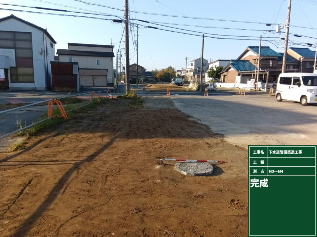 | 説明文 | 岡崎市福岡町地域の大雨による冠水また浸水を軽減する事を目的とし、本工事にて雨水管を埋設して福岡ポンプ場につなげる事で水害を減らす工事をしています。 |